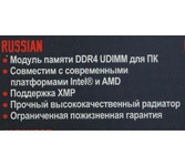 Тип: DDR4, объём: 1 модуль на 8Gb, тактовая частота: 3200 MHz, форм-фактор: DIMM 288-контактный, скорость: PC-25600, поддержка ECC: нет, Low Profile: нет, Registered: нет (PVS48G320C6)