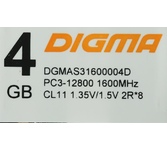 DIGMA Оперативная память DGMAD31600004S DDR3 - 1x 4ГБ 1600МГц, DIMM, Ret