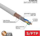 REXANT Кабель витая пара S/FTP, CAT 6A, LSZH нг(А)-HF, 4PR, 23AWG, INDOOR, SOLID, серый, 305м, серия