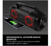 Эффектная разноцветная подсветка Защита от воды (IPx5) Беспроводная передача сигнала по Bluetooth Возможность зарядки мобильных устройств Выходная мощность (RMS), Вт 50 (2 ? 25) Частотный диапазон, Гц 50 – 20 000 Размеры динамиков, мм O 85 Беспроводная передача сигнала по Bluetooth да Воспроизведение музыки с носителей памяти microSD Источник питания литий-ионный aккумулятор: 3600 мA · час (2 шт.) USB: DC 5 V Номинальный ток потребления, А 0,76 Тип соединения Bluetooth, проводной Радиус действия, м до 10