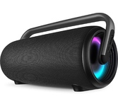 Выходная мощность 80 Вт Передача сигнала по Bluetooth Защита от воды (IPx5) Воспроизведение музыки с USB flash Беспроводное подключение двух колонок к одному источнику звука (TWS) Пассивный излучатель для глубокого и мощного баса Ручка для переноски Двухполосная акустическая система Время работы до 20 часов* Динамическая отключаемая RGB подсветка Функция эквалайзера Вход AUX для подключения источника звука Питание через порт USB