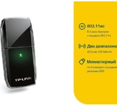 Сетевая карта WiFi 2,4/5ГГц, 802.11ac/a/b/g/n, 1xUSB2.0 Archer T2U