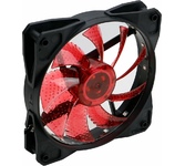 Вентилятор 12 см с LED подсветкой красного цвета. Количество светодиодов 15. Антивибрационные прокладки.