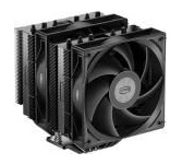Представляем вашему вниманию процессорный кулер PCcooler RT620Pro Black — образцовое решение для создания высокопроизводительной и бесшумной системы. Этот башенный кулер сочетает в себе проверенную эффективность тепловых трубок и сбалансированную работу двух вентиляторов, гарантируя исключительное охлаждение даже под серьёзной нагрузкой. В основе его выдающейся производительности лежит массивный алюминиевый радиатор, через который проходят шесть медных тепловых трубок диаметром 6 миллиметров. Такая конструкция обеспечивает быстрое и равномерное распределение тепла от процессора. Непосредственный контакт с процессором осуществляет полированное медное основание, что значительно повышает эффективность теплосъёма. Данная модель уверенно рассеивает до 250 ватт тепловой мощности, что делает её отличным выбором для мощных игровых и рабочих компьютеров. Стабильность и тишину работы обеспечивают два чёрных вентилятора размером 120 на 120 миллиметров. Каждый из них оснащён современным гидродинамическим подшипником, изв