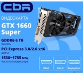 CBR Видеокарта GTX1660 Super 6Gb GDDR6, 192bit, 1530-1785Mhz, 1*DP + 1*HDMI + 1*DVI, 125W, Ret [VGA-
