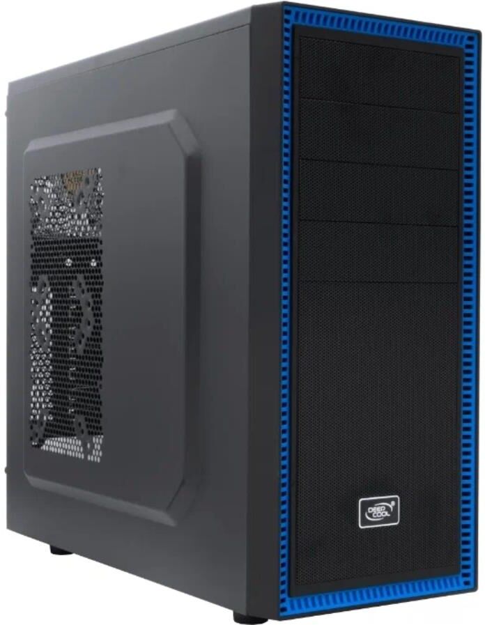 Компьютерный корпус Deepcool TESSERACT BF (DP-CCATX-TSRBFBK), без БП, черно-синий, ATX, видеокарта до 310мм, высота кулера для процессора до 165мм, 7 слотов расширения, 2 отсека 5.25", 4 отсека 3.5", 3 отсека 2.5", охлаждение 1x120мм DC fan сзади, (1x120мм спереди, 2x120мм сверху, 2x80/90/120мм сбоку опционально). Передние порты Микрx1, Audiox1, USB 2.0x1, USB 3.0x1. Размеры 210(Ш) x 454(В) x 472(Д)мм, Вес 5.20кг