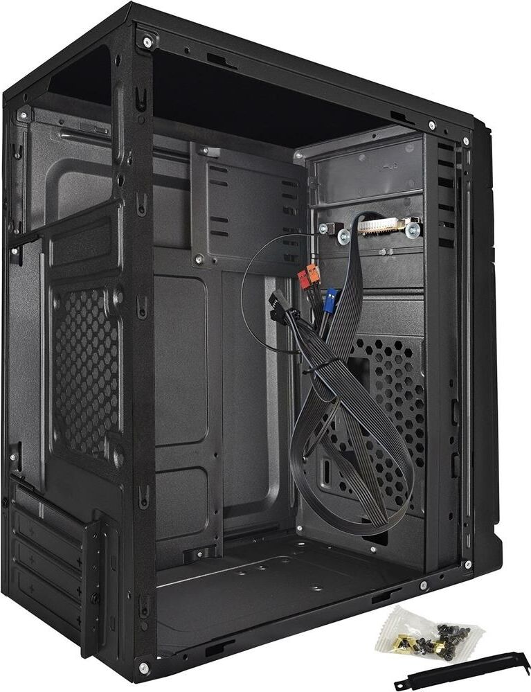 Назначение: Корпус; Типоразмер: MicroATX Mini Tower; Форм-фактор: microATX; Мощность блока питания: 450 Вт; Материал: сталь; Цветовое оформление корпуса: чёрный; Выходы на передней панели: Audio (микрофон + наушники), 2 х USB 2.0; Окно: нет; Наличие дверцы: нет; Система вентиляции корпуса: н/д; Места под дополнительные вентиляторы: На передней панели 12 см x 1, На задней панели 8 см x 1, На боковой панели 12 см x 1; Кол-во внутренних отсеков 2.5”: 1; Кол-во внешних отсеков 3.5”: нет; Кол-во внутренних