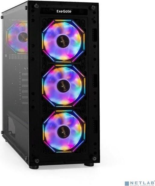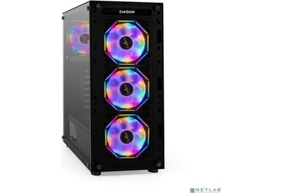 [Корпуса] Exegate EX294967RUS Корпус Miditower ExeGate i3 BASE (ATX, без БП, с окном, 1*USB+1*USB3.0, аудио, 4 вент. 12см с RGB подсветкой)