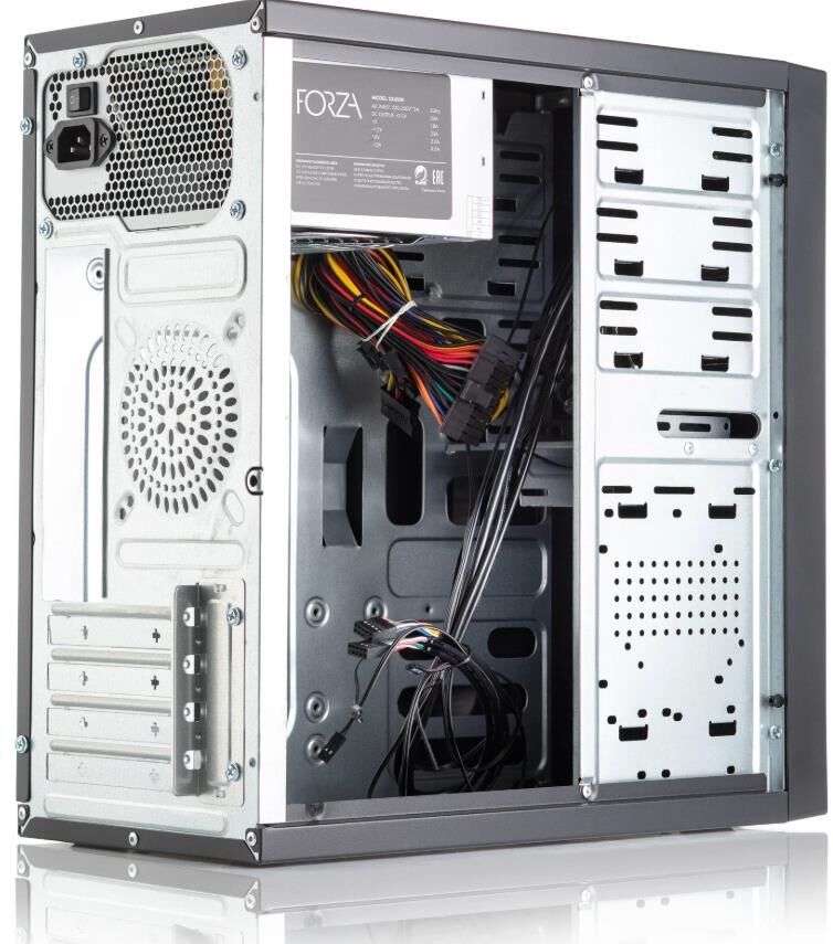 Компьютерный корпус с блоком питания Foxline 450Вт. Сase Forza mATX, 450W, 2xUSB 2.0, Black, w/o FAN, 12 cm fan PSU, power cord