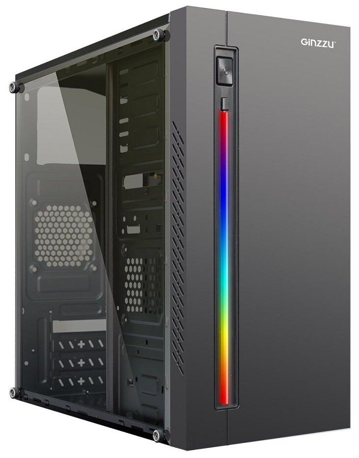 Формат шасси mATX. Шасси чёрного цвета, компактный размер, классическая организация внутреннего пространства. Боковая панель акриловое стекло. На передней панели декоративная RGB подсветка 16 режимов, с возможностью отключения. Кромки шасси хорошо завальцованы. Кнопки управления расположены сверху. Места крепления SSD.