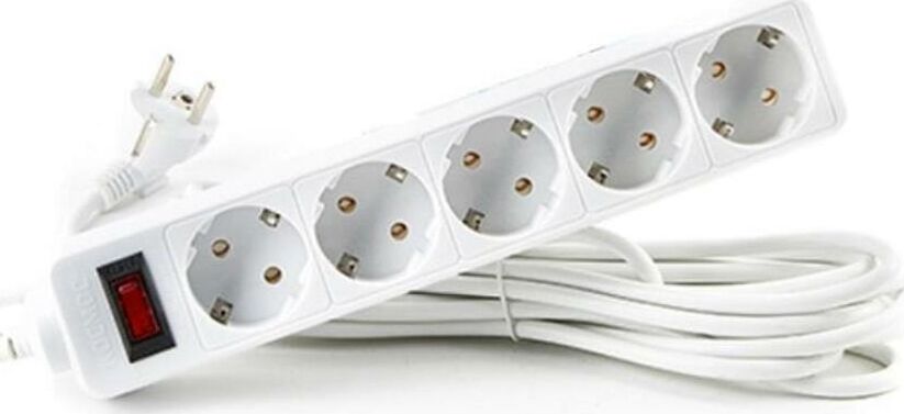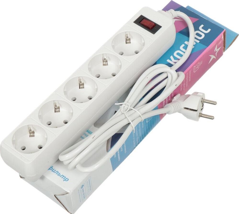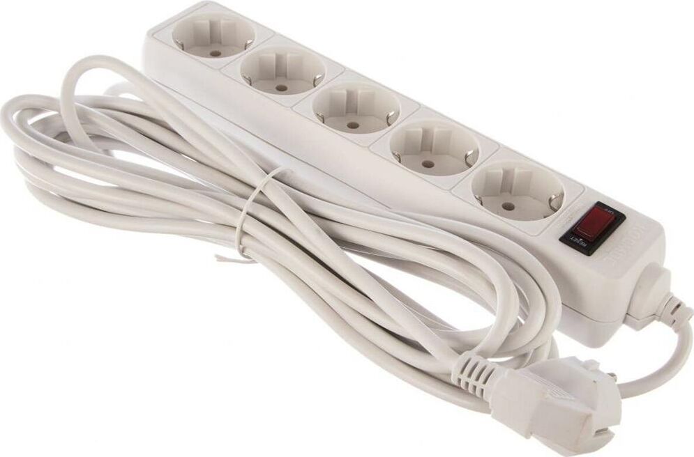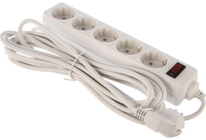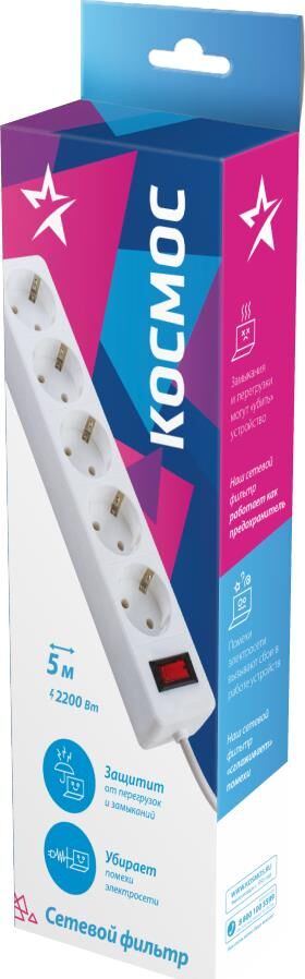 Сетевой фильтр(варистор,терморазмыкатель),5м, на 5 гнезд с заземлением, сечения провода - 3*0,75мм2,Медь 100%,Индикатор сети. Номинальный ток 10А, максимальная мощность - 2200Вт.