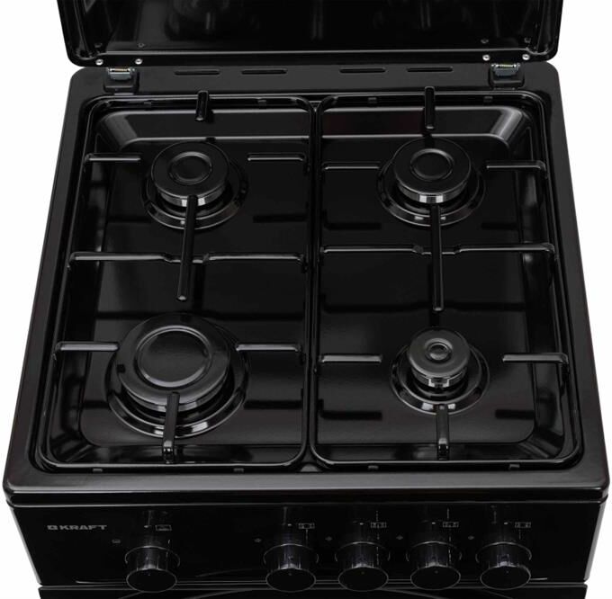 Габариты (ШхГхВ), мм - 500х550х855 Цвет - черный Мощность конфорок, Вт - 1000/1750/1750/2850 Крышка варочной поверхности - металлическая Решетка - эмалировання сталь Духовой шкаф - газовый Газ-контроль - духовой шкаф Термометр на дверце - есть Объем духового шкафа, л - 58 Количество стекол дверцы, шт. - 2 Внутренняя подсветка - нет Вес нетто / брутто, кг - 27/28,5 размеры в упаковке (ШxГxВ) (мм) - 512x562x870