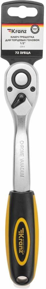KRANZ (KR-12-8401) Ключ-трещотка для торцовых головок 1/2, СrV, 72 зубца