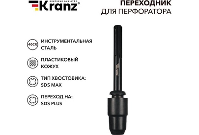 KRANZ (KR-91-0231) Переходник для перфоратора, пластиковый кожух, SDS MAX на SDS PLUS