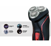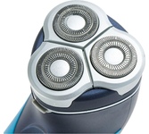 Акк/сетевая, 3-х ножевая. Мощность - 4Вт, время зарядки - 8ч, работа от аккумулятора или от сети, самозатачивающиеся лезвия, система объемного бритья, влагозащищенная, автономный режим работы 45 мин, откидной триммер.