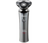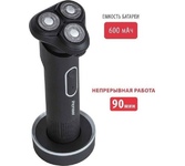 Для влажного и сухого бритья, 3 плавающие бреющие головки, насадка-триммер в комплекте, LED дисплей с индикатором уровня заряда, автономная работа от аккумулятора до 60 минут без подзарядки, зарядка через USB Type-C в течение 1.5 часов, Li-Ion аккумулятор, функция защитной блокировки, очистка под струёй воды. Мощность 5 Вт