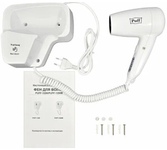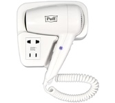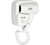 PUFF Фен для волос настенный " -1200B", белый, 1,2 кВт, с доп. розеткой