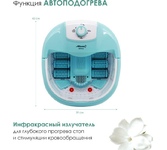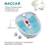 Мощность 90 Вт. Регулятор режимов работы. Вибромассаж. Массажная насадка. Поддержание температуры воды. Массаж магнитным полем. Защита от разбрызгивания жидкости. Точечный массаж стоп.