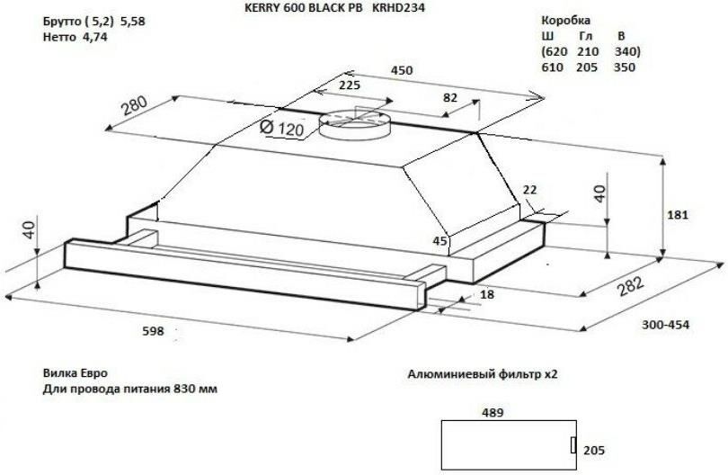 Режимы работы: отвод/циркуляция. Регулировка уровня мощности: есть. Управление: кнопочное. Количество двигателей: одномоторная. Количество регулировок мощности: 3. Диаметр штуцера для отвода воздуха: 120 мм. Максимальная производительность: 390. Уровень шума: 48. Встроенная подсветка: есть. Тип подсветки: светодиодное. Тип фильтра: жироулавливающий. Мощность подключения: 85. Антивозвратный клапан: есть. Вес (нетто): 4.75. Свободный выход воздуха: 500. Угольный фильтр: отсутствует. Размеры: 59.8x18.1x45.4см. Габариты упаковки (ед) ДхШхВ: 0.609x0.2x0.345. Вес упаковки (ед): 5.2. Подключение к электросети: кабель с вилкой. Гарантия: 60 мес.. Мощность подсветки: 1 х 2 Вт. Цвет: черный. Управление: кнопочное; регулировок мощности 3. Освещение: светодиодное. Режимы работы: отвод/циркуляция. Производительность: максимальная производительность 390 м3/час. Количество двигателей: одномоторная. Уровень шума: 48 дБ