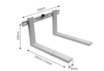 Стальной кронштейн для настенного крепления микроволновых печей и печей-гриль,нагрузка до 30кг,универсальная конструкция для разных типов печей,ширина монтажной планки 430мм,высота крепления 220мм,регулируемый вылет от стены 385-510мм,встроенный уровень.