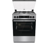 ШхГхВ: 90х60х88,5 см; 4 газовые конфороки и 2 электрические; автоподжиг; решетка: чугунная; электрическая духовка с двойной конвекцией: 110л; подсветка; гриль; отделение для хранения посуды; таймер ("часы"); цвет: бежевый