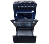 Цвет: черный; Габариты ВхШхГ: 85х50х60; Горелки стола: Газовые – 4 шт; Мощность горелок рабочего стола: Горелка передняя левая/правая – 2,0/2,4 кВт; Горелка задняя левая/правая – 2,0/1,0 кВт; Электрический духовой шкаф; Объем духовки в литрах: 65 л; Верхний/нижний нагреватель духовки: тен; Решетка рабочего стола: сталь; Крышка рабочего стола: стекло; Термометр духовки; Кнопка электророзжига горелок стола; Электрическая подсветка духовки; Газ-контроль рабрчего стола; Противень: 2 шт
