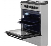 Горелки стола: Газовые – 4 шт. Мощность горелок рабочего стола: Горелка передняя левая/правая – 2,0/2,4 кВт. Горелка задняя левая/правая – 2,0/1,0 кВт. Электрический духовой шкаф. Объем духовки в литрах: 65 л. Верхний/нижний нагреватель духовки – тен.Решетка рабочего стола – сталь. Крышка рабочего стола – стекло. Термометр духовки. Кнопка электророзжига горелок стола. Электрическая подсветка духовки. Противень – 2 шт. Цвет Серый.