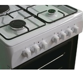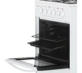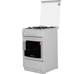 Горелки стола: Газовые – 4 шт. Выдвижной ящик для посуды. Мощность горелок рабочего стола: Горелка передняя левая/правая – 2,0/2,4 кВт. Горелка задняя левая/правая – 2,0/1,0 кВт. Электрический духовой шкаф. Объем духовки в литрах: 65 л. Верхний/нижний нагреватель духовки – тен.Решетка рабочего стола – сталь. Крышка рабочего стола – стекло. Термометр духовки. Кнопка электророзжига горелок стола. Электрическая подсветка духовки. Противень – 2 шт. В/Ш/Г 850/600/600