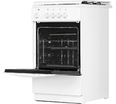 Габариты 850*500*600 Вес, кг - 38 Объём духовки 54 л. Основные характеристики варочной поверхности: 3 газовые конфорки 1,0/1,7/3,0 кВт 1 электрическая конфорка 1,5 кВт Основные характеристики духового шкафа: Электрическая духовка Нижний ТЭН - 1,2 кВт Верхний ТЭН - 0,8 кВт Терморегулятор Освещение Комплектация: Большой противень Малый противень Решётка для жарки Эмалированная решётка Стеклянная крышка рабочего стола Хозяйственный отсек Техническое описание: Цвет - белый