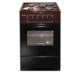 (ШхГхВ) 500х600х840±5 мм.Цвет коричневый.Масса нетто: 36 кг.Газ: природный или сжиженный Количество конфорок: 1 Количество горелок: 3 Мощность передней левой горелки: 1.5 кВт Мощность передней правой горелки: 2.3 кВт Мощность задней левой горелки: 1 кВт Мощность задней правой конфорки: 1.5 кВт (180 мм) Тип духовки: электрическая Мощность вехнего ТЭНа: 0.8 кВт Мощность нижнего ТЭНа: 1.2 кВт Температура жарочного шкафа регулируется от 50 до 300 °С Объём жарочного шкафа — 57 л Электророзжиг Подсветка духовки Дверца съёмная с двойным стеклом Выдвижной ящик для хранения кухонных принадлежностей Подставка для посуды малого диаметра