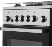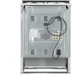 Габариты и вес: Ширина 60 см, Высота 83.5 см, Глубина 60.5 см, Вес 40 кг * Горелки стола: Газовые 3 шт. Электр. 1 шт. Мощность горелок рабочего стола: -Горелка передняя левая/правая 2,0/2,4 кВт. Горелка задняя левая, электрическая 1,5 кВт. Горелка задняя правая 1,0 кВт. Решетка рабочего стола чугун. Крышка рабочего стола стекло. Верхний нагреватель духовки ТЭН. Нижний нагреватель духовки ТЭН. Электророзжиг при помощи кнопки. Электрическая подсветка духовки. Термостат, Индикатор работы электроконфорок. Индикатор работы ТЭНа духовки. Противень 2 шт.