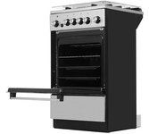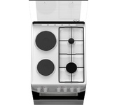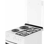 (ШхГхВ)50х60х85см. Цвет белый.Объем духовки, л.50.Количество конфорок 4. Газовые горелки стола 2.Электроконфорки (1кВт) 2.Электрическая духовка. Количество режимов духовки 4.Интегрированный электрический розжиг горелок стола.Терморегулятор.Подсветка.Выдвижной ящик.Регулируемые опоры. Крышка стеклянная.