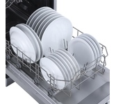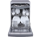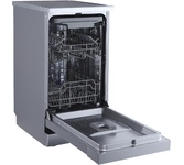 Отдельностоящая, габариты 84,5x44,8x60 см, Цвет серебристый, 10 комплектов посуды, кол-во корзин - 2 для посуды, 1 для столовых приборов, А++, LED дисплей, таймер отсрочки запуска 1-24 ч, кол-во программ - 6: интенсивная, обычная, эко, быстрая, стекло, 90 минут, тип сушки - конденсационная, расход воды за цикл - 9л., режим 1/2 загрузки, экстра сушка, макс.уровень шума - 49 дБ
