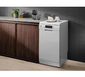 Тип посудомоечной машины: узкая. Тип сушки: активная. Загрузка, комплектов посуды: 9. Класс энергопотребления: C. Тип управления: электронное. Максимальный уровень шума: 47. Максимальный расход воды: 9.9. Количество программ мойки: 8. Тип защиты от протечек: полная (корпус + шланг для заливки воды). Программы: Быстрая 30/60 мин., Экономичная, Стандартная 90/160 мин., AUTO Sense, Предварительное ополаскивание, Extra Hygiene, Самоочистка, Сушка посуды. Отсрочка запуска: 24. Количество корзин: 2. Габариты упаковки (ед) ДхШхВ: 0.68x0.48x0.89. Вес упаковки (ед): 42. Напряжение питания: 220-240 В. Технология защиты от протечек: AquaStop. Тип установки: напольная. Цвет панели управления: белый. Автоматические программы: есть. Инверторный мотор: есть. Гарантия: 12 мес.. Размеры (ШхВхГ): 45х85х62 см. Цвет: белый. Безопасность и управление: защита от протечек, таймер отсрочки запуска. Индикация: наличия соли. Особенности конструкции: дисплей. Режимы и программы: интенсивная мойка, экономичная мойка. Дополнительные особ