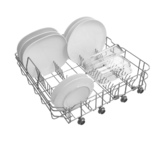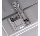 Посудомоечная машина MAUNFELD MLP-08IMR — это полновстраиваемая узкая посудомоечная машина. Она имеет 81.5 сантиметр в высоту, 44.8 сантиметров — в ширину и 55 сантиметров — в глубину. Ее можно компактно разместить на кухне, поместив под кухонную столешницу. Дизайн простой, современный и стильный. Он выполнен в универсальном серебристом цвете, внутренняя камера изготовлена из нержавеющей стали. Это надежный и прочный материал, он не боится физических повреждений от столовых приборов, контакта с водой, т. к. не подвержен коррозии. Панель управления — сенсорная. Достаточно легкого нажатия по сенсорной клавише, чтобы запустить процесс мытья посуды, активировать функцию половинной загрузки, если тарелок, приборов и стаканов недостаточно, чтобы загрузить сразу обе корзины, и вы хотите сэкономить расход воды и моющих средств, отложить старт до 24 часов или указать, что вы используете средства All в 1. О том, что устройство включено сообщит красный луч на полу, есть также индикация наличия соли, достато
