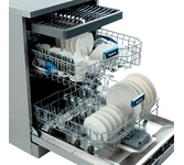 Инверторная полноразмерная посудомоечная машина с цветным сенсорным дисплеем • цвет Нержавеющая сталь • вместимость 15 комплектов посуды • габариты 84,5x59,8x59,8 см • расход воды - 10 л • энергопотребление за цикл — 0,65 кВт*ч • 8 программ • автооткрывание дверцы • отсрочка запуска - 1-24ч • корзины — 3 шт