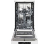 Ширина 45 см, 11 комплектов, кнопочное управление, дисплей, 6 режимов управления (Легкий, интенсивный, Эко, быстрый, 60 минут, замачивание), 3 корзины, отложенный старт 1-24ч, система AquaBlock, конденсационная сушка, класс мытья/сушки/энергопотребления -