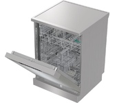 (Ш*Г*В) 59.7x59.9x84.5 см. Цвет серый. Полноразмерная, сушка конденсационная. Максимальный расход воды 11 л. Максимальная температура 70 °С. Загрузка 13 комплектов посуды. Кол-во корзин 2. Регулируемая по высоте корзина для посуды, складные держатели тарелок, полки для кружек. Дисплей. Звуковой сигнал.