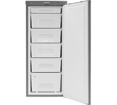 Габариты (ВхШхГ)122х57,4х61см. Объем 180л. Вес 47кг. Однокамерный морозильник на 5 ящиков. Управл-е электромеханическое. Размораж-е морозильной камеры ручное. Производительность замораживания, кг/сут не менее 14. Потребление энергии 281 кВт/год. Перевешиваемые двери. Цвет металлик искристый.