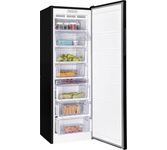 Вертикальный морозильник. Размеры (ВхШхГ), см: 171,4х60х60. Общий объем 266 л. Полезный объем 240 л. 1 компрессор (R600a). Электронное управление, внутренний дисплей. Авто.разморозка. Быстрая заморозка Quick Freeze. Время сохранения t°C без электричества: 22 ч. Уровень шума: 40 дБ. Перенавешиваемая дверца. Внешняя ручка. Антибактериальное покрытие резинового уплотнителя. Cигнал открытой двери, 4 ящика, 3 отделения с откидной крышкой, лоток для льда, лоток для пельменей. Мощность замораживания: 22 кг/24 ч. Климатический класс: SN-ST. Класс энергетической эффективности: А. Цвет: Серебристый.