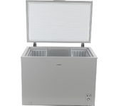 Морозильный ларь для мороженого Общие данные: Размеры: высота: 82,5 см ширина: 125,5 см глубина: 66,1 см Общий объем: 354 л Полезный объем: 249 л Годовое потребление энергии: 726 кВтч/год Система оттаивания морозильной камеры: ручная Дополнительная информация: Экологически безопасный хладагент R 290 Система охлаждения: статическая Диапазон температур: от -10 °C до -24 °C Индикатор температуры Материал внутреннего корпуса: сталь Тип роликов: поворотные ролики Отвод талой воды Подвесные корзины Закаленное одинарное безопасное стекло Сдвижная стеклянная крышка Эффективная система замораживания Вес: 60 кг