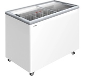 Ларь со стеклянными сдвижными дверцами, плоская форма стекла. Общий объем 330 л, полезный объем 260 л. Климатический класс: ST. Класс энергоэффективности B, Потребление 949 кВтч/год, , механическое управление, Хладагент R290, Температурный режим от -18°С