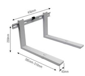 Стальной кронштейн для настенного крепления микроволновых печей и печей-гриль,нагрузка до 30кг,универсальная конструкция для разных типов печей,ширина монтажной планки 430мм,высота крепления 220мм,регулируемый вылет от стены 385-510мм,встроенный уровень.