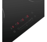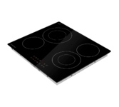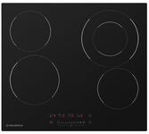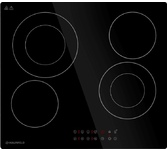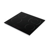 Стеклокерамическая варочная поверхность; 4 зоны, двойная зона расширения, сенсорное управление слайдерного типа, таймер; защита от детей; индикация остаточного тепла; рамка из нержавеющей стали; цвет: черный
