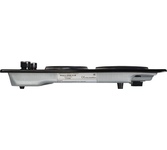Общие параметры: 2 ИНДУКЦИОННЫХ ЭЛЕМЕНТА • 160 мм, 1300 (бустер 1500 Вт) • 180 мм, 1800 (бустер 2000 Вт) Общая мощность: 3500 Вт • Сенсорный слайдер • Инверторная технология нагрева