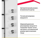 4 горелки Мощность горелок: 3,0/1,75/1,75/1,0 кВт Материал панели сталь Материал решетки эмаль Размер 60*51 см Электроподжиг Мощность электроподжига 1,5 Вт Фиксированное положение "Минимальное пламя" Набор форсунок для баллонного газа Тип газа: природный (метан), сжиженный (пропан-бутан) Давление газа: G20 2000 Па (20 мбар) Вес 7,35 кг Длина шнура 0,8 м Напряжение 220-240В,50-60Гц Гарантия 2 года