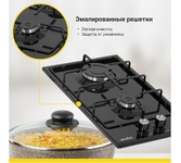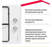 Газовая варочная панель Simfer H60Q40W470 - модель, которая благодаря своим компактным размерам органично впишется в интерьер вашей кухни и сделает ежедневный процесс приготовления еды комфортным. Рабочая поверхность выполнена из прочного и долговечного материала. На ней располагаются четыре конфорки - разные по диаметру и мощности пламени в них. А значит вы сможете выбрать оптимальную конфорку для приготовления разнообразных блюд.