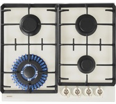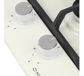 Газовая варочная поверхность 60 см. 4 газовые конфорки. Газ Контроль. Автоподжиг в ручке. Чугунная решетка АНТИК. Ручки управления металл Латунь, жаропрочный пластик Ретро стиль. Шнур, вилка. Эмалированная сталь, цвет Бежевый.