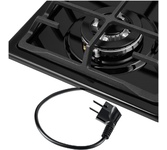 Размеры 46х52х9,8см. Закаленное стекло, черный, чугунная решетка, автоматический розжиг, газ-контроль, 3 газовые конфорки, WOK-конфорка, ширина варочной поверхности 45см, Турция