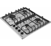 Тип панели: газовая. Установка рабочей поверхности: независимая. Материал поверхности: нержавеющая сталь. Материал решетки: эмалированная сталь. Заводская настройка на газ: 20. Суммарная мощность газовых конфорок: 7. Минимальная толщина столешницы: 30. Цвет: нержавеющая сталь. Газ-контроль: есть. Габариты упаковки (ед) ДхШхВ: 0.68x0.565x0.12. Вес упаковки (ед): 9.1. Страна производства: Турция. Подключение к электросети: кабель с вилкой. Настроенный вид газа: природный (метан). Общее количество конфорок: 4. Расположение панели управления: спереди/сбоку. Управление: механическое. Электроподжиг: в ручке (автоматический). Гарантия: 36 мес.. Левая ближняя конфорка: газовая, мощность 2.6 кВт, одноконтурная. Левая дальняя конфорка: газовая, мощность 1 кВт, одноконтурная. Размеры (ШхГхВ): 590х515х51 мм. Размеры ниши для встраивания (ШхГхВ): 560х490. Правая ближняя конфорка: газовая, мощность 1.7 кВт, одноконтурная. Правая дальняя конфорка: газовая, мощность 1.7 кВт, одноконтурная. Тип переключателей: поворотные. Тип